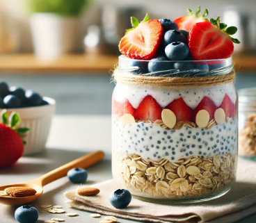 • 롤드 오트에 우유와 치아씨드를 섞어 냉장 보관 후 과일이나 견과류를 얹는다.