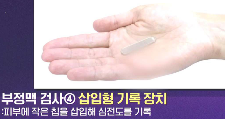 삽입형 기록 장치: 피부에 작은 칩을 삽입해 심전도를 기록하는 장치도 있다.