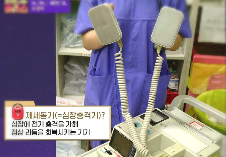▶제세동기(=심장충격기) 심장에 전기충격을 가해 정상 리듬을 회복시키는 기기를 사용하거나