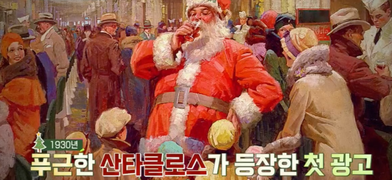 우리가 현재 알고 있는 푸근하고 풍채좋은 빨간 옷을 입고 있는 산타클로스의 기원은 사실 콜라 회사의 마케팅 전략으로 탄생한 이미지이다.