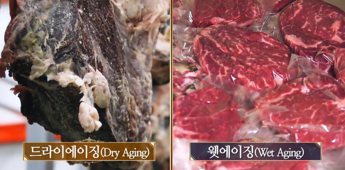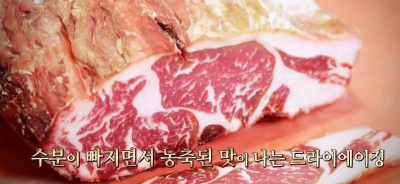 * 드라이에이징은 건조숙성 과정에서 원 고기의 40% 이상이 손실이 된다. 수분이 빠지면서 농축된 맛이 난다.