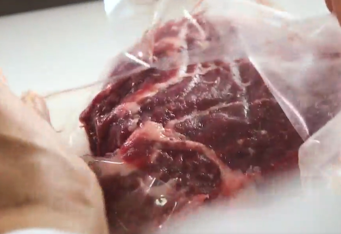 1. 고기의 표면을 깨끗하게 다듬고 냉장고 내부에 걸거나 선반에 놓는다.