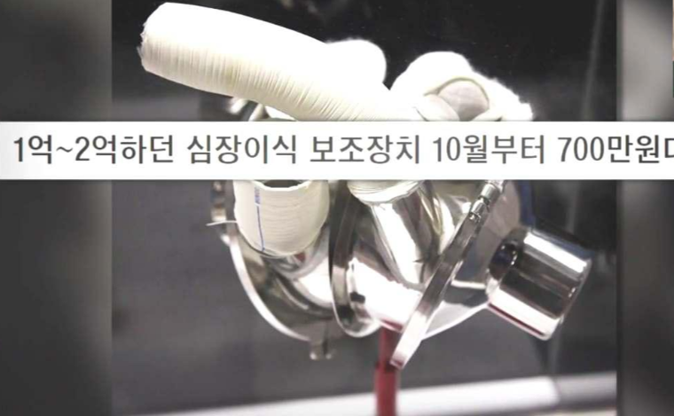 그래서 심장 이식이 힘든 사람들을 위한 인공 심장이 나왔는데 하루 24시간 몸에 지녀야하는 불편함과 함께 기계만 약 1억 5천만원 정도이다. 수술 비용까지 포함하면 1억 8천만원에 육박해서 2018년도 부터 1억 ~2억 하던 심장이식 보조장치를 10월부터 700만원대로 심장 이식 환자만큼 호전될 수 있다.