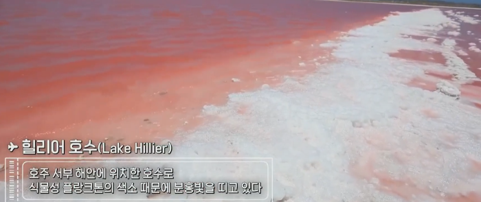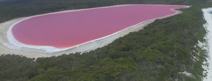 힐리어 호수는 호주 서부 해안에 위한 호수로 식물성 플랑크톤의 색소 때문에 분홍빛을 띠고 있다.
