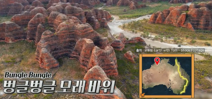킴벌리 고원의 벙글벙글 모래바위는 약 2억 5천만 년 전 강의 퇴적물로 형성된 지형이다. 킴벌리 고원의 면적은 우리나라 면적의 5배일 정도로 광활한 지역이다.