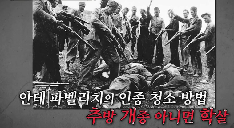이때 크로아티아인들에 의해 첫번째 인종 청소가 이루어진다. 크로아티아 독립국가는 나치를 등에 업고 이 지역에 있는 민족 중에서 크로아티아인을 제외한 모든 민족을 대량 학살과 탄압을 하게 된다. 그 중에서 가장 탄압을 받은 민족은 세르비아인이었다. 과거 유고슬라비아 왕국시절 파워가 있었고 독재와 탄압에 대한 앙갚음을 한 것이다. 크로아티아  인종청소의 중심에 섰던 인물이 안테 파벨리치였다.
