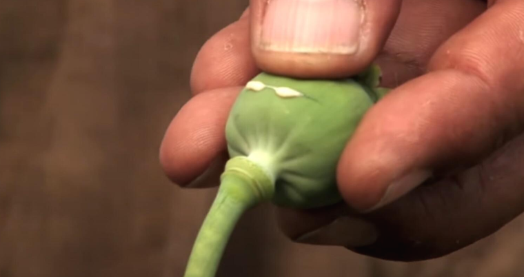 양귀비가 꽃이 피기 전 양귀비 꽃망울인 덜 익은 열매를 칼로 베어 아편의 재료를 추출 하게 되는데 꽃봉오리의 칼로 흠집을 내면 우유빛깔 액체를 받아 건조시켜 굳히면 생아편이 된다.