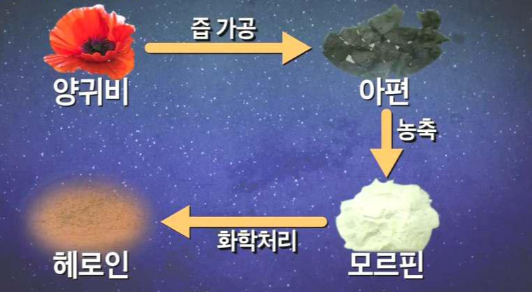 아편은 19세기 부유층이나 학자들이 지금의 커피마시듯 즐겼다고 한다. 아편을 농축시키면 강한 진통력의 마약 모르핀이 된다.