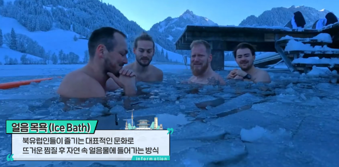 얼음 목욕은 신체 회복, 면역 강화, 정신 집중, 혈액순환, 체지방 감소, 피부·모발 건강 등