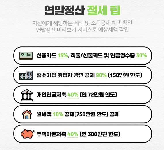 각 공제 항목에는 정해진 한도가 있다. 예를 들어, 신용카드 소득공제는 총 한도가 300만 원이다. 공제 한도를 넘기면 추가 공제가 불가능하니 계획적으로 지출해야 한다.