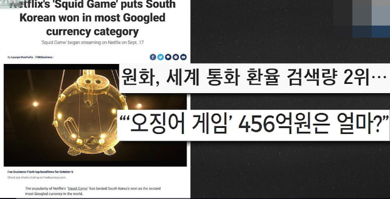 ▷오징어 게임 456억원은 달러로 얼마인가를 검색하는 한국 원화 검색이 검색량 2위를 차지했다.