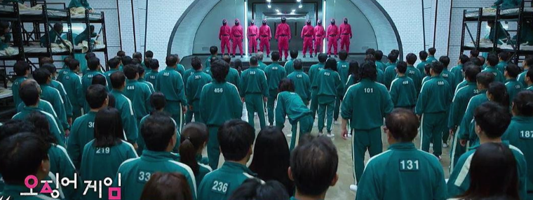 넷플릭스 대표 리드 헤이스팅스가 오징어 게임의 초록색 체육복을 입고 3분기 실적 발표에 참여, 부사장 딘 가필드도 똑같이 오징어게임 초록색 체육복을 입고 인터뷰에 응할 정도로 오징어 게임은 넷플릭스의 상징적인 작품이 된다.