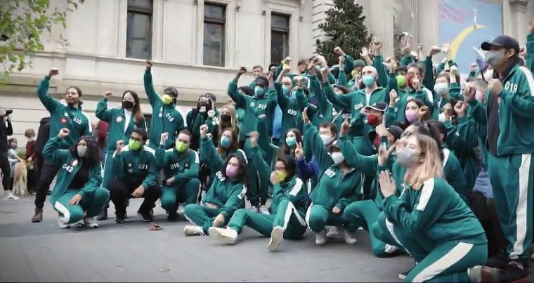 ▷오징어 게임 속 줄다리기, 손등치기, 구슬치기 1970,80년대 한국의 전통놀이가 이제 세계 놀이 문화가 되고 있고 2021년 뉴욕 맨해튼 코리안 페스티벌에서 약 3만명 넘는 사람들이 한국 문화체험에 다녀 갔다고 한다.