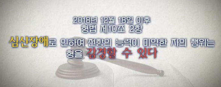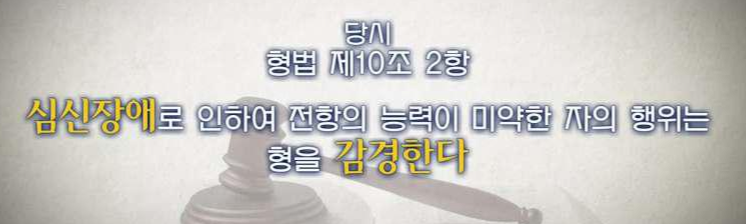 조두순은 그렇게 2021년 출소했다. 조두순 사건은 '심신 미약'을 악용한 대표적인 사건이다. 당시 법 조항에 따라서 감경이 이뤄졌고 이로 인해 2018년에 법 개정이 심신장애로 ‘감경할 수감경할수 있다’로 변경되었다.