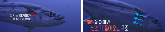 참치는 일반 물고기처럼 아가미를 펌프질해 숨 쉬지 않는다.