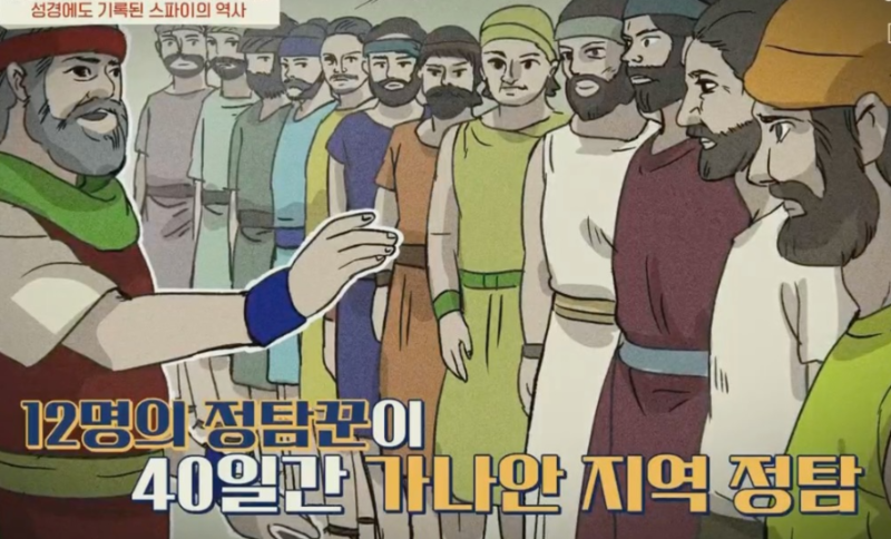 기록상 최초의 스파이 간첩은 성경에 나와있다. 구약성서 민수기에 기록된 12명의 정탐꾼 이야기로 모세가 이집트(애굽)을 탈출해 가나안 땅으로 들어가기전 12명의 정탐꾼이 40일간 이 지역을 정탐하도록 보냈다는 것이 공식 기록이다.