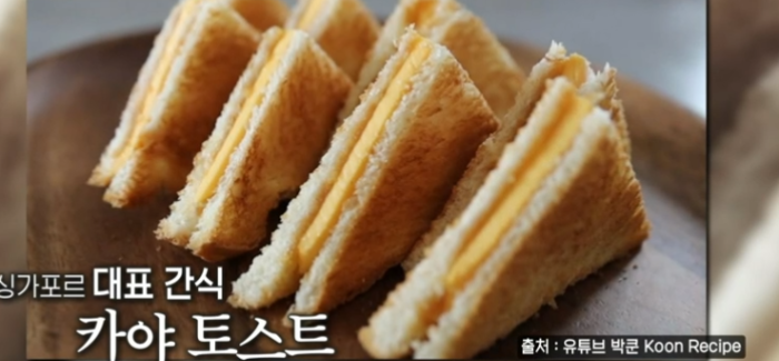 이 카야 토스트는 중국 하이난 출신의 화교가 영국 선박에서 일하던 중 코코넛밀크로 만든 카야잼을 빵에 발라 먹으면서 개발된 음식이다. 당시 화교들은 영국 선원들이 즐기던 버터와 잼을 활용한 토스트를 변형하여 자신들만의 스타일로 재해석했다고 한다. 서양식 잼 대신 코코넛 밀크와 설탕, 계란을 주재료로 한 카야 잼을 사용했고, 전통적으로 굽던 빵에 발라 먹는 방식으로 새로운 간식을 만들어냈다.