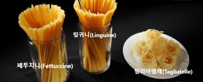 면이 넓고 굵직한 롱파스타 면은 열을 오랫동안 보존해 천천히 식기때문에 진한 소스가 적합하다. 진한소스가 면과 함께 깊은 감칠맛을 내기 때문에 전분을 씻어낼수 있는 진한 소스를 흥건하게 붓지 않는다.