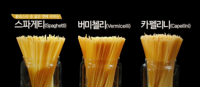 가느다란 파스타면은 빨리 식고 빨리 퍼지기 때문에 식으면서 면의 탄력이 사라진다. 그래서 열을 보존해주는 오일소스가 적합하다.
