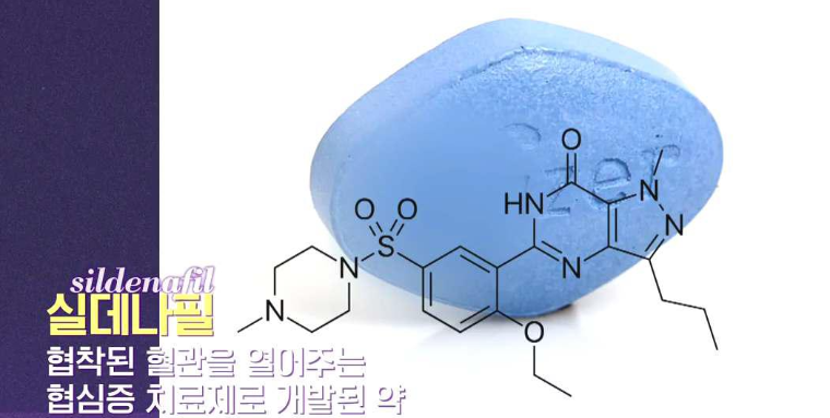남성 발기 부전 치료제의 주성분 실데나필도 협착된 혈관을 열어주는 협심증 치료제로 개발된 약이었다. 그러나 병든 혈관은 늘리지 못하고 정상 혈관만 늘리게 되면서 발기 부전 치료제로 개발이 된 것이다. 그래서 심장 질환자는 복용금지 약물이다. 그래서 발기부전제 (비아그라 등)는 심장질환, 협심증 환자들은 복용하면 안 된다. 특히 혈관 확장제 복용자는 절대 금지 약물이다.