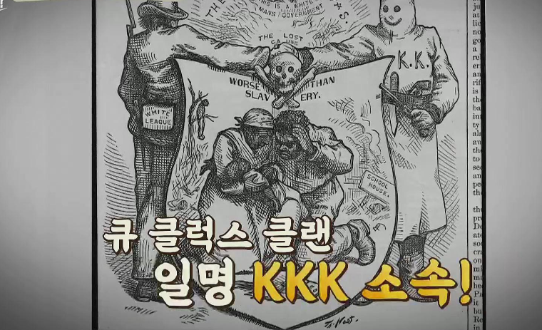 현재 kkk는 초창기와 달리 변질한 단체인데 1865년 미국 남북전쟁을 끝났을때 미국의 남부지방은 전쟁 폐배로 쑥대밭이 되고 남부 소속의 사람들이 집에 돌아왔을때 전쟁의 여파로 집은 불타고 폐허가 된 모습을 보게 된다. 이에 남북 전쟁 발발 원인이였던 흑인 노예제도인 근본적인 원인을 처단하자는 잘못된 시작으로 비난의 화살을 흑인들에게 돌렸던 것이 KKK의 시작이다.