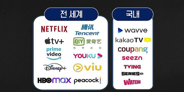 ott의 뜻은 Over The Top의 약자로 전파나 케이블이 아닌 인터넷으로 영상콘텐츠를 제공하는 tv서비스를 말한다. 전세계적으로 현재까지는 넷플릭스가 1등이고 2022에 애플tv , 디즈니 tv가 들어온다.