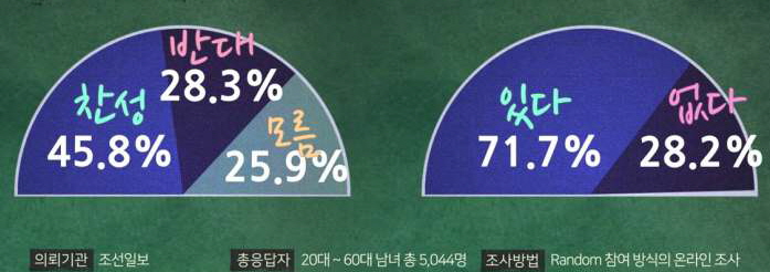 * 법조항의 '부모 징계권'을 삭제하는데 동의하십니까? 라는 질문에 45.8% 가 찬성한다고 답했지만