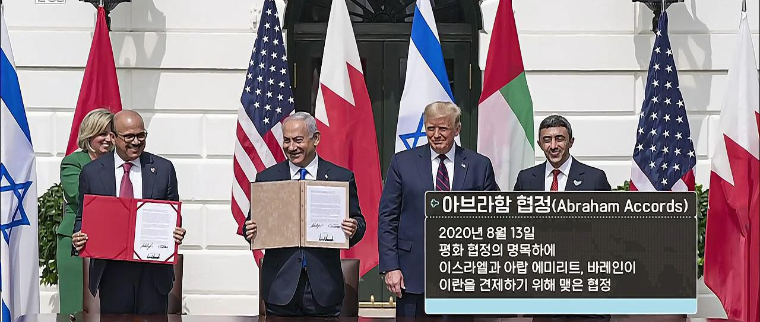 결국에는 트럼프는 새로운 안을 내놓는다. 이스라엘과 아랍국가들(아랍 에미리트, 바레인) 사이에 이란을 견제하기 위해 아브라함 협정을 맺는다. 아브라함 협정은 중동의 평화 협정이었지만 팔레스타인 문제는 우선순위에서 밀렸다.